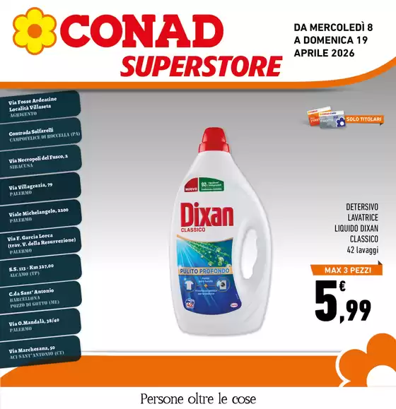 Benvenuto su Tiendeo! Qui puoi trovare non solo le migliori offerte, cataloghi e promozioni, ma anche scoprire i negozi più popolari di Aliminusa. Durante il mese di aprile 2026, puoi esplorare le ultime novità di Conad Superstore, uno dei marchi più rinomati, e trovare i negozi più vicini con tutti i dettagli utili su Aliminusa.