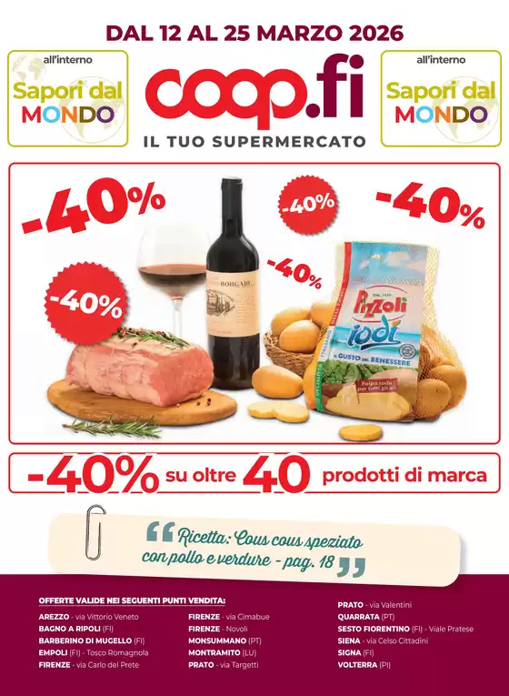 Benvenuto nel negozio Coop su Tiendeo, dove potrai scoprire le migliori offerte, promozioni e cataloghi di questo marchio rinomato nel settore di Iper e super. Il nostro negozio fisico si trova a Viale Talenti, 94-96, Firenze, e lì troverai un'ampia gamma di prodotti di qualità che ti permetteranno di risparmiare durante tutto il marzo 2026.