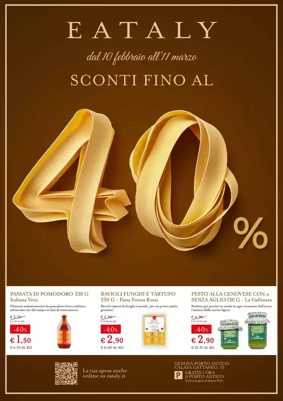 Non perdere l'opportunità di visitare il negozio Eataly a Calata Cattaneo, 15 per un'esperienza di acquisto completa. Ti invitiamo a esplorare le promozioni che abbiamo per te questo marzo e a rimanere aggiornato sulle migliori offerte di Eataly a Genova. Vieni a trovarci e inizia a risparmiare oggi stesso!