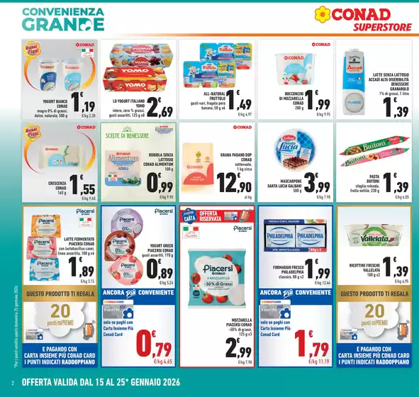 Non perdere l'opportunità di visitare il negozio Conad Superstore a Via Fabio Taglioni 3 per un'esperienza di acquisto completa. Ti invitiamo a esplorare le promozioni che abbiamo per te questo gennaio e a rimanere aggiornato sulle migliori offerte di Conad Superstore a Lugo. Vieni a trovarci e inizia a risparmiare oggi stesso!