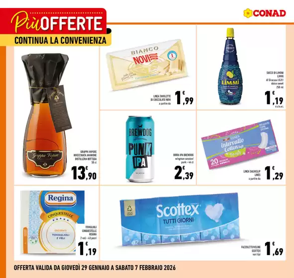 Benvenuto nel negozio Conad su Tiendeo, dove potrai scoprire le migliori offerte, promozioni e cataloghi di questo marchio rinomato nel settore di Iper e super. Il nostro negozio fisico si trova a Via A. Sebastiano, 119, Minturno, e lì troverai un'ampia gamma di prodotti di qualità che ti permetteranno di risparmiare durante tutto il gennaio 2026.