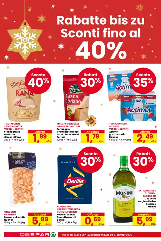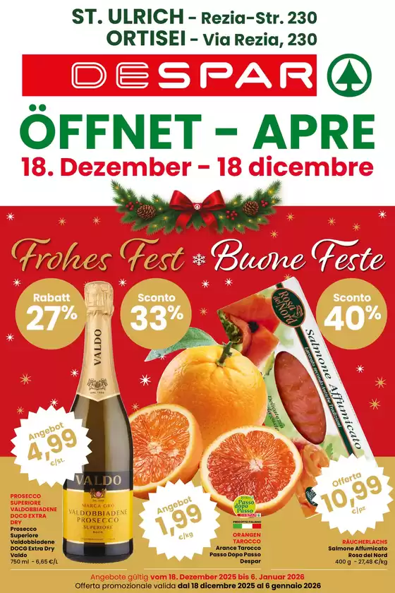 Benvenuto nel negozio Despar su Tiendeo, dove potrai scoprire le migliori offerte, promozioni e cataloghi di questo marchio rinomato nel settore di Iper e super. Il nostro negozio fisico si trova a Strada Rezia, 46, Ortisei, e lì troverai un'ampia gamma di prodotti di qualità che ti permetteranno di risparmiare durante tutto il dicembre 2025.