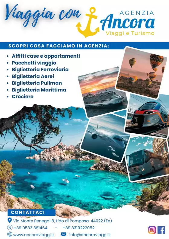Benvenuto su Tiendeo, il luogo ideale per trovare le migliori offerte, cataloghi e promozioni di Viaggi in Italia. Durante il mese di dicembre del 2025, su Tiendeo potrai accedere alle ultime novità e sconti di Agenzia Ancora, uno dei marchi più riconosciuti nel settore di Viaggi.