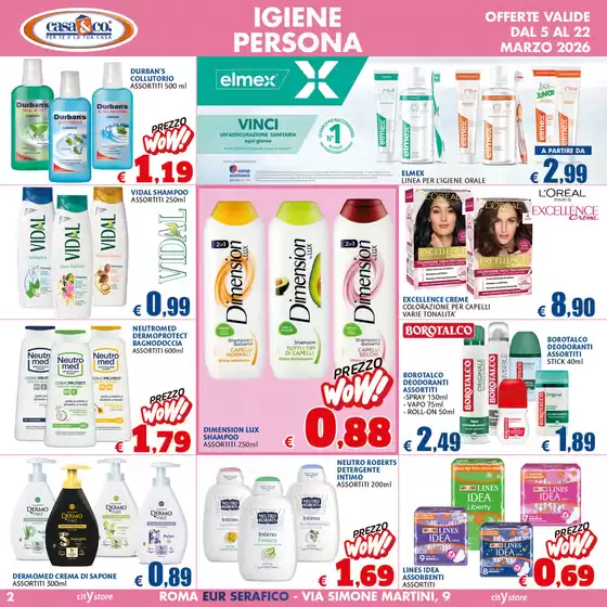 Casa&Co è una catena italiana, specializzata nella vendita di articoli di consumo quotidiano per la casa e la persona a prezzi concorrenziali. Gli assortimenti comprendono tutti i marchi più conosciuti del mercato. Un’offerta completa con l’obiettivo di rispondere per intero alle esigenze di spesa della famiglia nel settore del no food di consumo. L’obiettivo dell’azienda è di raggiungere il maggior numero punti vendita sul territorio italiano mediante lo sviluppo della rete, dando la possibilità ad un sempre crescente numero di famiglie l’accesso a prezzi d’acquisto più bassi eliminando gli intermediari commerciali. Casa&Co è presente anche in occasione delle importanti manifestazioni stagionali con l’arredo giardino, il mare, la scuola, il Natale, ecc. Il catalogo Casa&Co comprende un vasto assortimento di prodotti per la pulizia ma anche casalinghi, giocattoli, bricolage, tessile casa, prodotti da ufficio. Con una rete di punti vendita presenti nel Lazio, Abruzzo, Umbria, Marche e Puglia, Casa&Co è facilmente accessibile a molti consumatori. Potrete consultare gli orari Casa&Co e tutte le offerte Casa&Co su www.tiendeo.it.