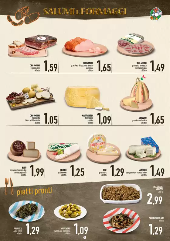 I punti vendita Ciro Amodio sono una catena italiana specializzata nella produzione e distribuzione di latticini e salumi. Le radici di produttori di latticini e di salumi hanno spinto l’azienda a curare personalmente e scrupolosamente più aspetti della filiera produttiva. Ed è proprio per garantire al consumatore un elevato standard qualitativo dei prodotti finiti che Ciro Amodio cura con la massima attenzione ogni fase del processo di selezione e trasformazione del latte. Inoltre l’azienda ha dato vita ad allevamenti di suini che assicurano loro una corretta alimentazione ed una sana crescita e consentono, dalla lavorazione delle carni in stabilimenti certificati, di realizzare salumi di indiscutibile genuinità. Il catalogo Ciro Amodio, oltre ai latticini ed ai salumi di cui l’azienda è produttrice, comprende un’ampia gamma di prodotti a marchio proprio realizzati da aziende fornitrici accuratamente selezionate. I responsabili Qualità di Ciro Amodio controllano lo sviluppo del prodotto fino ai banchi di vendita per garantirne qualità e freschezza. Con una rete di oltre 80 punti vendita sul territorio campano, i negozi Ciro Amodio sono accessibili a molti consumatori. In più l’azienda offre la possibilità di consultare online sul sito ufficiale le tante promozioni in corso e il volantino aggiornato. Potrete consultare gli orari Ciro Amodio e tutte le offerte Ciro Amodio anche su Tiendeo.