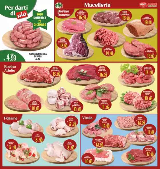 I punti vendita Supermercati Effe Più, affiliati al Gruppo Romano Supermercati Gros, sono un’insegna della Grande Distribuzione presente a Roma. Gros è un gruppo di distribuzione della città di Roma e provincia che riunisce tutti i punti vendita di varie insegne storiche sotto un unico marchio in una logica di organizzazione unitaria e sviluppo prodotti e servizi dedicati al territorio di Roma e Lazio. La filosofia del gruppo Gros impone assortimenti, prodotti e servizi unici per tutti i punti vendita con una forte caratterizzazione "romano-laziale" ispirata ai valori e alle tipicità del territorio, ed ai desideri, aspettative e abitudini dei cittadini. Il catalogo Supermercati Effe Più comprende un ampio assortimento di prodotti alimentari e non food, con un’accurata selezione dei freschi con i reparti ortofrutta, macelleria e pescheria. Con una rete di tre punti vendita diffusi nell’area metropolitana di Roma, i negozi Supermercati effe Più sono accessibili a molti consumatori. In più l’azienda offre la possibilità di consultare online sul sito ufficiale le tante promozioni in corso e il volantino aggiornato. Potrete consultare gli orari Supermercati Effe Più e tutte le offerte Supermercati Effe Più anche su Tiendeo.