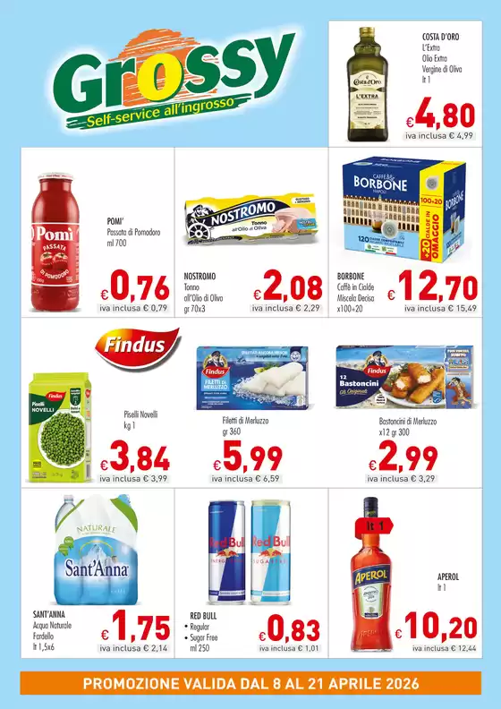 Approfitta al massimo delle offerte e promozioni di Grossy e rimani aggiornato su tutte le variazioni di prezzi e prodotti durante aprile del 2026. Su Tiendeo, avrai sempre accesso alle migliori opportunità di acquisto in Italia. Non aspettare oltre e inizia subito a esplorare le offerte che abbiamo per te!