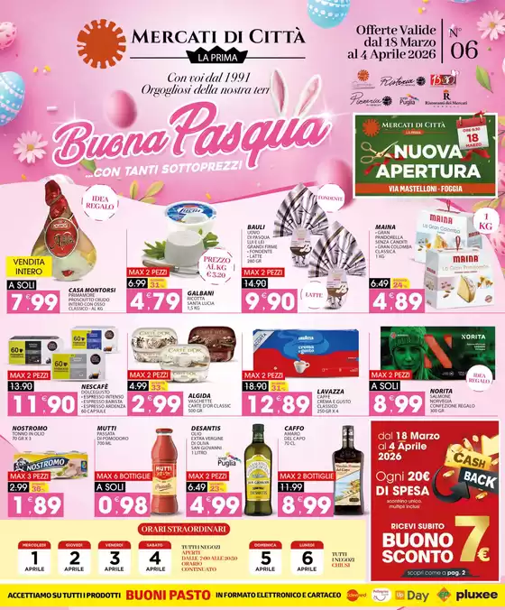 I punti vendita La Prima Supermercati sono una catena italiana della Grande Distribuzione, attiva nella provincia di Bari. Il principale obiettivo della catena è consigliare il meglio delle scelte. I prodotti non sono solo un prezzo, ma saperi, competenze, opportunità; fare la spesa nei punti vendita La Prima Supermercati significa portare a casa benessere e convenienza, salute e risparmio. Tutti i prodotti sono accuratamente scelti, rispondono a norme d’igiene e ai controlli HACCP.: qualità e freschezza assoluta per il benessere dei clienti. Il catalogo La Prima Supermercati comprende un ampio assortimento di prodotti alimentari e non food, con un’accurata selezione dei freschi e particolare attenzione ai prodotti tipici ed enogastronomici. Con una capillare diffusione sul territorio regionale, i punti vendita La Prima Supermercati sono accessibili a molti consumatori. Potrete consultare gli orari La Prima Supermercati e tutte le offerte La Prima Supermercati anche su Tiendeo.