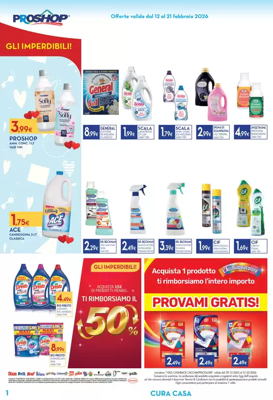 Proshop nasce con lo scopo di dar vita ad una catena di negozi specializzati nella cura e nell’igiene della casa e della persona. L’azienda propone un’offerta ampia e qualificata che negli anni ha conquistato la fiducia dei clienti per l’ottimo rapporto qualità-prezzo. Un’ampissima gamma di prodotti selezionati con cura e raggruppabili in tre principali categorie merceologiche: cura della casa con i più qualificati prodotti per la pulizia e ligiene, cura della persona inclusi cosmetici e prodotti per l’infanzia, pet care con un vasto assortimento di alimenti e articoli per la cura e la pulizia degli animali domestici. Tutti i punti di vendita sono ideati per garantire al consumatore un’esperienza d’acquisto veloce, assistita e sempre di qualità.
