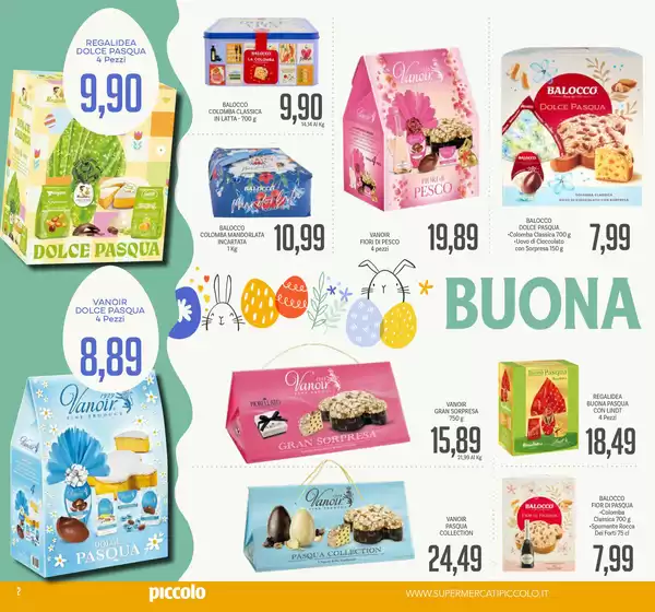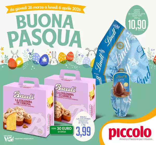 I Supermercati Piccolo sono una catena italiana presente in varie parti della provincia di Napoli. Sin dalle origini l’azienda ha ritenuto che i luoghi di un supermercato non dovessero essere solo “scatole enormi” per contenere ogni tipo di genere alimentare e di altro. I Supermercati Piccolo hanno dato a ciascuno dei punti vendita il “disegno di un’anima” e di una comunità legata alla cultura dei cibi, all’amore per i legami umani, per servizi e cortesie che si fanno elementi preziosi in grado di guidare e supportare ogni spesa dei suoi clienti. Ogni bisogno. Il catalogo Supermercati Piccolo comprende un ampio assortimento di prodotti alimentari, con un’accurata selezione dei freschi e particolare attenzione ai prodotti tipici ed enogastronomici, oltre a reparti di produzione di primi, secondi e contorni che trovate nei banchi a libero servizio di molti punti vendita. Con una rete di circa 10 punti vendita sul territorio napoletano, i Supermercati Piccolo sono accessibili a molti consumatori. In più l’azienda offre la possibilità di consultare online sul sito www.supermercatipiccolo.it le tante promozioni in corso e il volantino aggiornato. Potrete consultare gli orari Supermercati Piccolo e tutte le offerte Supermercati Piccolo anche su www.tiendeo.it.