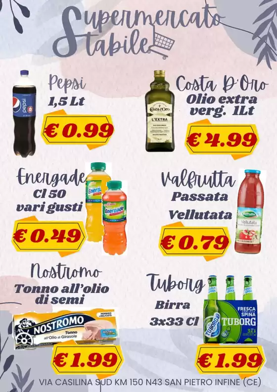 Approfitta al massimo delle offerte e promozioni di Supermercati Stabile e rimani aggiornato su tutte le variazioni di prezzi e prodotti durante gennaio del 2026. Su Tiendeo, avrai sempre accesso alle migliori opportunità di acquisto in Italia. Non aspettare oltre e inizia subito a esplorare le offerte che abbiamo per te!