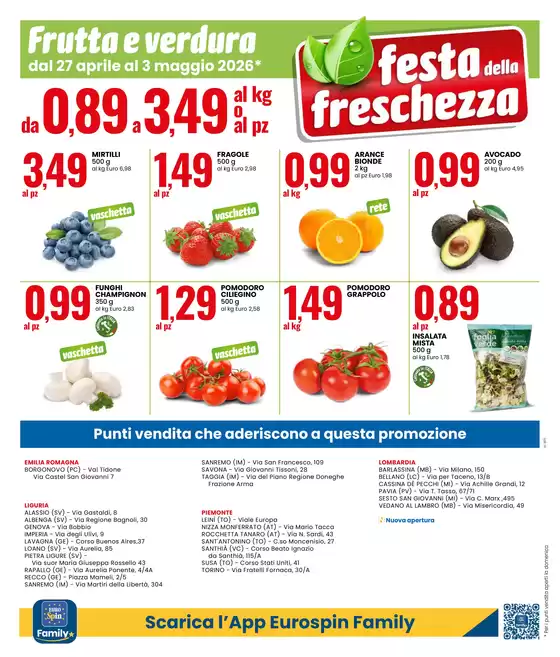 Eurospin è dal 1993 il gruppo discount maggiore in Italia. I prodotti presenti nella catena, che puoi trovare anche nel nuovo volantino Eurospin, offrono qualità e freschezza ad un prezzo conveniente e accessibile ad ogni tipo di clientela. Inoltre presso i punti vendita Eurospin troverai articoli dei marchi del gruppo discount, tra cui bio, senza glutine, compostabili e biodegradabili. Consulta tutte le offerte Eurospin nell’ultimo volantino Eurospin presente su Tiendeo e approfitta oggi di promozioni convenienti su articoli di qualità.