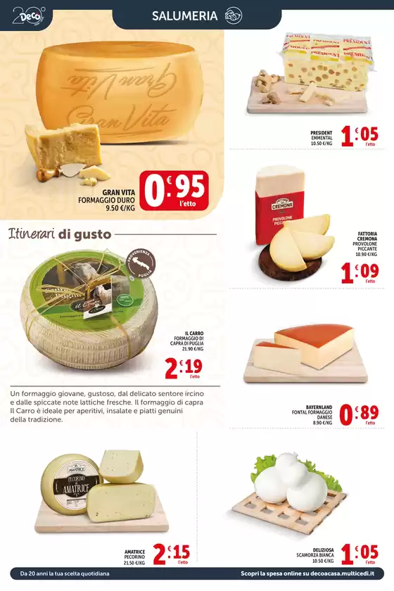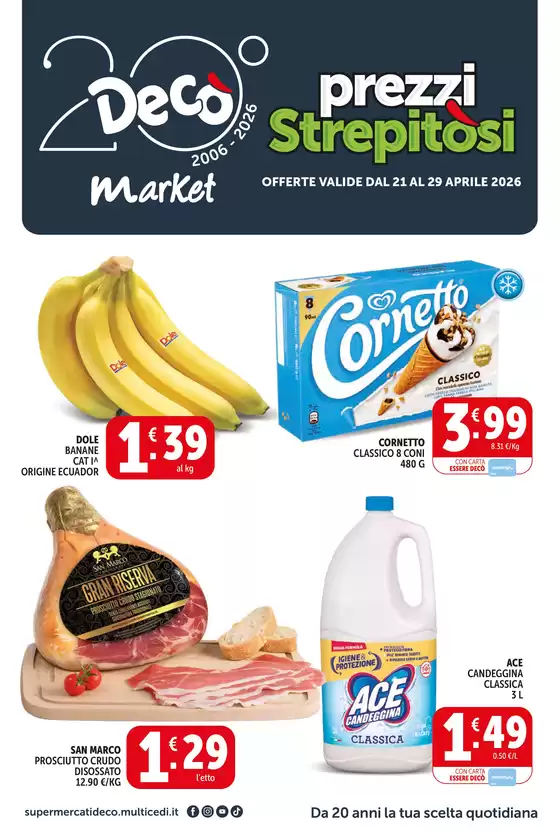 Decò Italia è una catena di supermercati presente nel centro-sud Italia, nata dalla collaborazione tra Multicedi e Gruppo Arena. I supermercati Decò offrono prodotti freschi e convenienti, con unattenzione particolare verso le eccellenze regionali e nazionali. Le sue offerte vantaggiose e i prezzi scontati sono accessibili a tutti. Scopri tutte le offerte Decò sul volantino presente su Tiendeo e approfitta oggi di promozioni vantaggiose su un’ampia gamma di articoli.