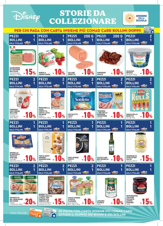 Conad, acronimo di Consorzio Nazionale Dettaglianti, è una società cooperativa fondata a Bologna e attiva dal 1962. Ad oggi Conad presenta oltre 3.000 punti vendita e 5.000 prodotti in assortimento, garantendo ogni giorno qualità e prezzi convenienti alla sua clientela. Conad offre format per ogni esigenza da iper e supermercati a punti vendita di minori dimensioni come Margherita Conad e Todis. Inoltre la clientela Conad può usufruire del servizio di spesa online HeyConad, che permette di ricevere l’ordine direttamente a casa tramite consegna a domicilio o ritirarlo presso uno dei punti vendita. Consulta l’anteprima del volantino Conad disponibile su Tiendeo e scopri maggiori informazioni su promozioni e servizi della catena.