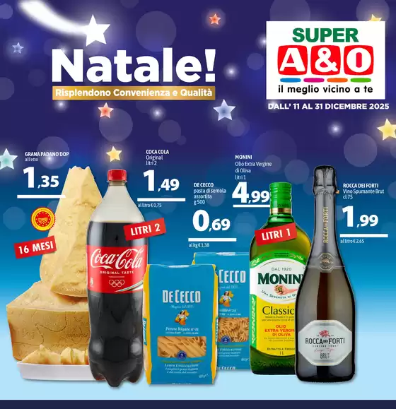 I Supermercati A&O sono un’insegna del Gruppo Selex, una delle più importanti realtà della distribuzione moderna italiana. Il catalogo A&O comprende un ampio assortimento di prodotti alimentari, con un’accurata selezione dei freschi e particolare attenzione ai prodotti tipici ed enogastronomici. Tutti gli assortimenti, dai salumi ai formaggi tipici, alla pasta, ai vini, alla frutta e verdura, rispecchiano in pieno le mille e golose sfaccettature delle tavole italiane.