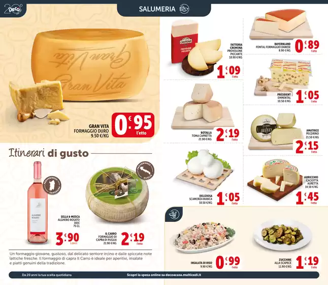 Decò Italia è una catena di supermercati presente nel centro-sud Italia, nata dalla collaborazione tra Multicedi e Gruppo Arena. I supermercati Decò offrono prodotti freschi e convenienti, con unattenzione particolare verso le eccellenze regionali e nazionali. Le sue offerte vantaggiose e i prezzi scontati sono accessibili a tutti. Scopri tutte le offerte Decò sul volantino presente su Tiendeo e approfitta oggi di promozioni vantaggiose su un’ampia gamma di articoli.