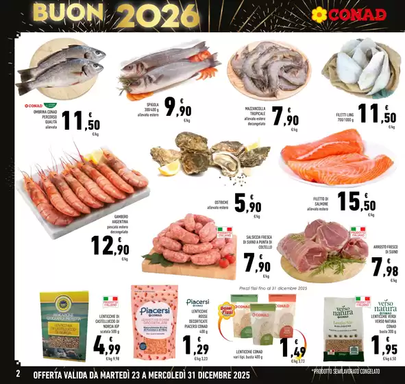 Conad, acronimo di Consorzio Nazionale Dettaglianti, è una società cooperativa fondata a Bologna e attiva dal 1962. Ad oggi Conad presenta oltre 3.000 punti vendita e 5.000 prodotti in assortimento, garantendo ogni giorno qualità e prezzi convenienti alla sua clientela. Conad offre format per ogni esigenza da iper e supermercati a punti vendita di minori dimensioni come Margherita Conad e Todis. Inoltre la clientela Conad può usufruire del servizio di spesa online HeyConad, che permette di ricevere l’ordine direttamente a casa tramite consegna a domicilio o ritirarlo presso uno dei punti vendita. Consulta l’anteprima del volantino Conad disponibile su Tiendeo e scopri maggiori informazioni su promozioni e servizi della catena.