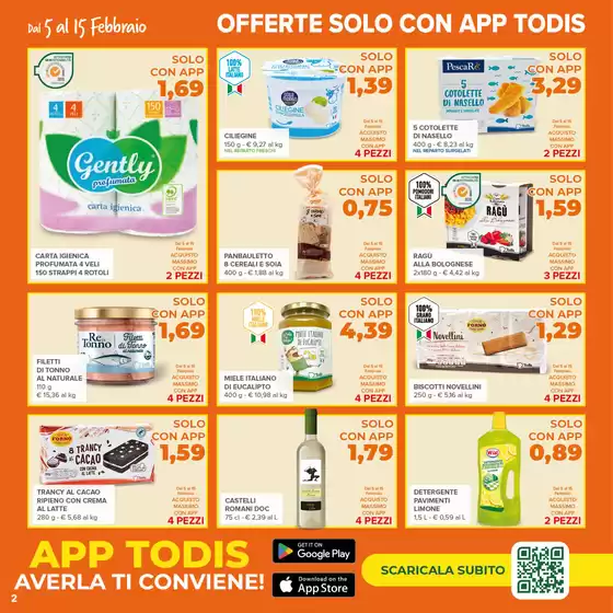 Todis è una catena italiana di supermercati discount, presente soprattutto nel Centro Italia, nata all’interno del mondo Conad. Il catalogo Todis coniuga l’alta qualità dei prodotti ad un vasto assortimento composto da oltre 3.700 referenze di prodotti anche a marchio proprio. Non mancano nell’offerta i prodotti etnici, biologici, salutistici, vegani e per celiaci.