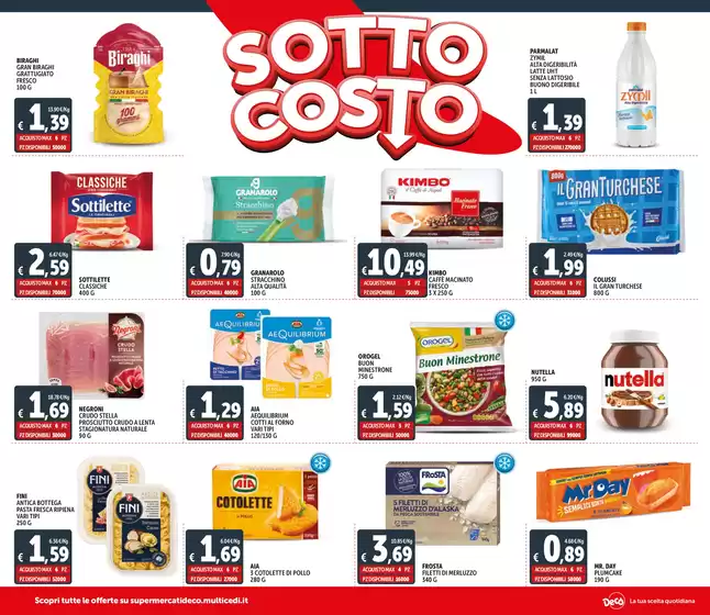 Decò Italia è una catena di supermercati presente nel centro-sud Italia, nata dalla collaborazione tra Multicedi e Gruppo Arena. I supermercati Decò offrono prodotti freschi e convenienti, con unattenzione particolare verso le eccellenze regionali e nazionali. Le sue offerte vantaggiose e i prezzi scontati sono accessibili a tutti. Scopri tutte le offerte Decò sul volantino presente su Tiendeo e approfitta oggi di promozioni vantaggiose su un’ampia gamma di articoli.