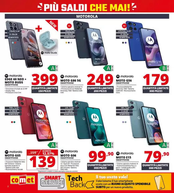 Comet è unazienda italiana con sede a Bologna attiva dal 1967 che offre elettrodomestici ed elettronica di consumo a privati e materiale elettrico a clienti professionali, industria ed enti pubblici. Comet conta più di 100 negozi fisici nel centro e nord Italia e un negozio online, tramite il quale si possono ordinare i prodotti con consegna a domicilio o ritirarli nel punto vendita più vicino. Visualizza il volantino Comet su Tiendeo e non perderti nessuna promozione e novità della catena.