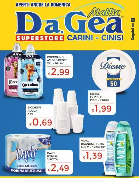 Benvenuto su Tiendeo, la tua migliore opzione per trovare le migliori offerte, cataloghi e promozioni di Iper e super a Carini. Durante il mese di aprile 2026, sulla nostra piattaforma potrai scoprire le ultime offerte di DA.GEA Superstore, uno dei marchi più popolari nel settore Iper e super a Carini.