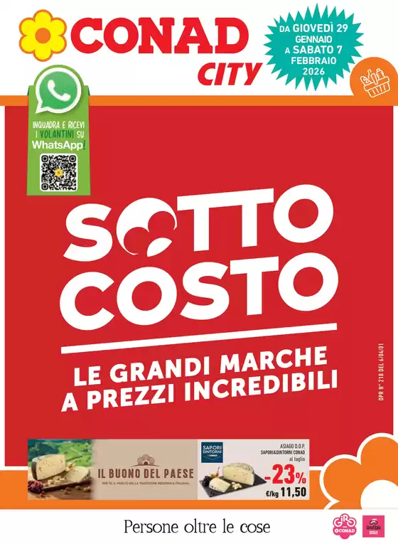 Conad è una catena italiana di supermercati e ipermercati che opera nel settore della Grande Distribuzione Organizzata, formata da 8 gruppi cooperativi. Il catalogo Conad City coniuga la facilità della spesa vicino casa con la completezza dell’assortimento e la qualità. Comprende prodotti alimentari, bevande, gastronomia, ortofrutta pronta alluso, panetteria e prodotti tipici regionali. Le linee di articoli a marchio proprio spaziano dalle eccellenze di Sapori&Dintorni, ai prodotti Conad Kids per il bambino, Conad Verso Natura, Alimentum e Piacersi.