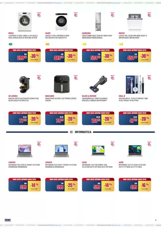 Trony è una catena italiana specializzata nella vendita di articoli di elettronica di consumo e hi-tech, con oltre 200 punti vendita distribuiti sul territorio. Il catalogo Trony conta migliaia di referenze e comprende le migliori marche nei settori dell’informatica, degli elettrodomestici, della telefonia, TV, audio e videogiochi. L’azienda offre anche la possibilità di acquistare online in modo facile e intuitivo.
