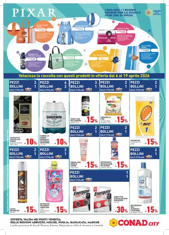 Conad è una catena italiana di supermercati e ipermercati che opera nel settore della Grande Distribuzione Organizzata, formata da 8 gruppi cooperativi. Il catalogo Conad City coniuga la facilità della spesa vicino casa con la completezza dell’assortimento e la qualità. Comprende prodotti alimentari, bevande, gastronomia, ortofrutta pronta alluso, panetteria e prodotti tipici regionali. Le linee di articoli a marchio proprio spaziano dalle eccellenze di Sapori&Dintorni, ai prodotti Conad Kids per il bambino, Conad Verso Natura, Alimentum e Piacersi.