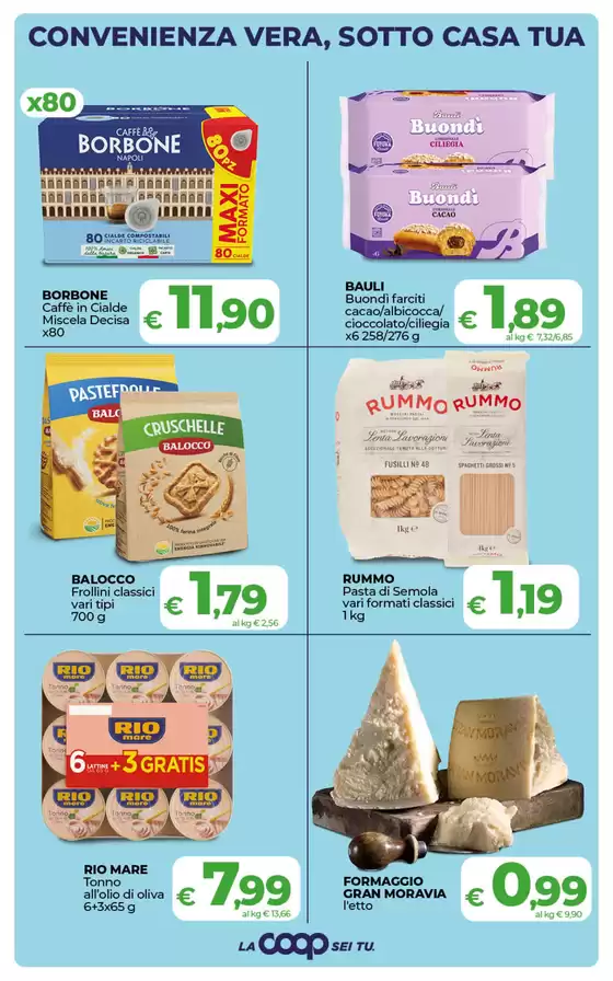Coop, acronimo di Cooperativa Consumatori è attiva in Italia dal 1969, fornendo un’ampia gamma di prodotti da alimentari a elettrodomestici a prezzi sempre convenienti. Attualmente sono presenti nella penisola ben 1300 punti vendita tra iper e supermercati. Oltre al servizio di spesa in loco e online la cooperativa offre diversi servizi tra cui operatore di telefonia mobile, librerie e stampa foto digitali. Consulta ora tutte le offerte nel volantino Coop presente su Tiendeo e approfitta subito di promozioni incredibili su vari articoli.