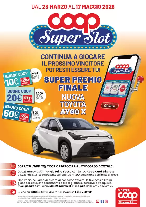 Coop, acronimo di Cooperativa Consumatori è attiva in Italia dal 1969, fornendo un’ampia gamma di prodotti da alimentari a elettrodomestici a prezzi sempre convenienti. Attualmente sono presenti nella penisola ben 1300 punti vendita tra iper e supermercati. Oltre al servizio di spesa in loco e online la cooperativa offre diversi servizi tra cui operatore di telefonia mobile, librerie e stampa foto digitali. Consulta ora tutte le offerte nel volantino Coop presente su Tiendeo e approfitta subito di promozioni incredibili su vari articoli.