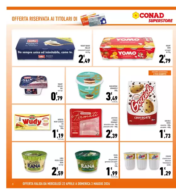 Conad è una catena italiana di supermercati e ipermercati che opera nel settore della Grande Distribuzione Organizzata, formata da 8 gruppi cooperativi. Il catalogo Conad Superstore coniuga la facilità della spesa vicino casa con la completezza dell’assortimento ed i maggiori servizi di aree commerciali ampie. Comprende prodotti alimentari, bevande, articoli per l’igiene e per la casa, hobby e giardinaggio. Le linee di articoli a marchio proprio spaziano dalle eccellenze di Sapori&Dintorni, ai prodotti Conad Kids per il bambino, Conad Verso Natura, Alimentum e Piacersi.