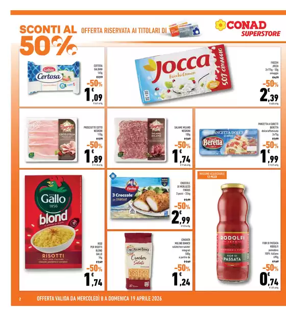 Conad è una catena italiana di supermercati e ipermercati che opera nel settore della Grande Distribuzione Organizzata, formata da 8 gruppi cooperativi. Il catalogo Conad Superstore coniuga la facilità della spesa vicino casa con la completezza dell’assortimento ed i maggiori servizi di aree commerciali ampie. Comprende prodotti alimentari, bevande, articoli per l’igiene e per la casa, hobby e giardinaggio. Le linee di articoli a marchio proprio spaziano dalle eccellenze di Sapori&Dintorni, ai prodotti Conad Kids per il bambino, Conad Verso Natura, Alimentum e Piacersi.
