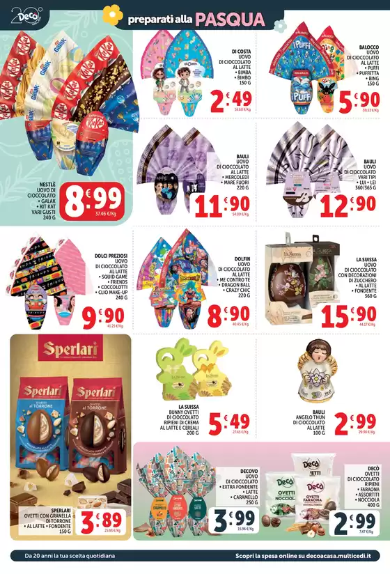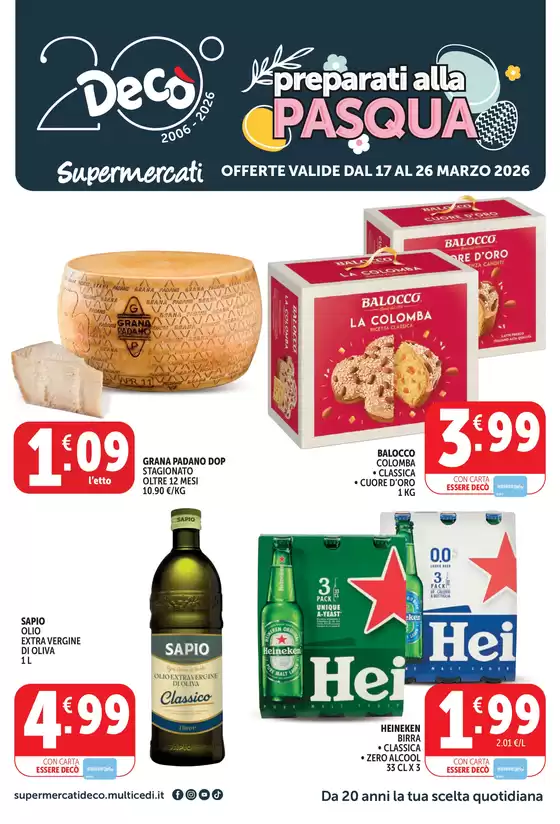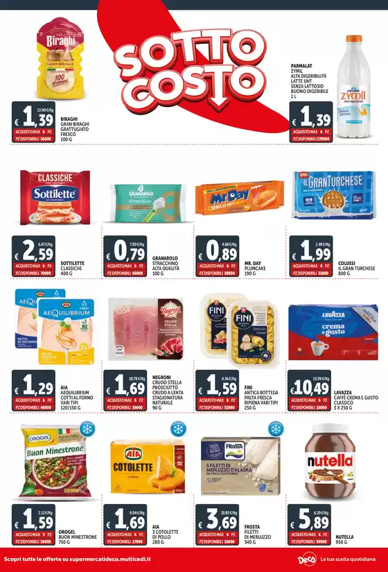 Decò Italia è una catena di supermercati presente nel centro-sud Italia, nata dalla collaborazione tra Multicedi e Gruppo Arena. I supermercati Decò offrono prodotti freschi e convenienti, con unattenzione particolare verso le eccellenze regionali e nazionali. Le sue offerte vantaggiose e i prezzi scontati sono accessibili a tutti. Scopri tutte le offerte Decò sul volantino presente su Tiendeo e approfitta oggi di promozioni vantaggiose su un’ampia gamma di articoli.