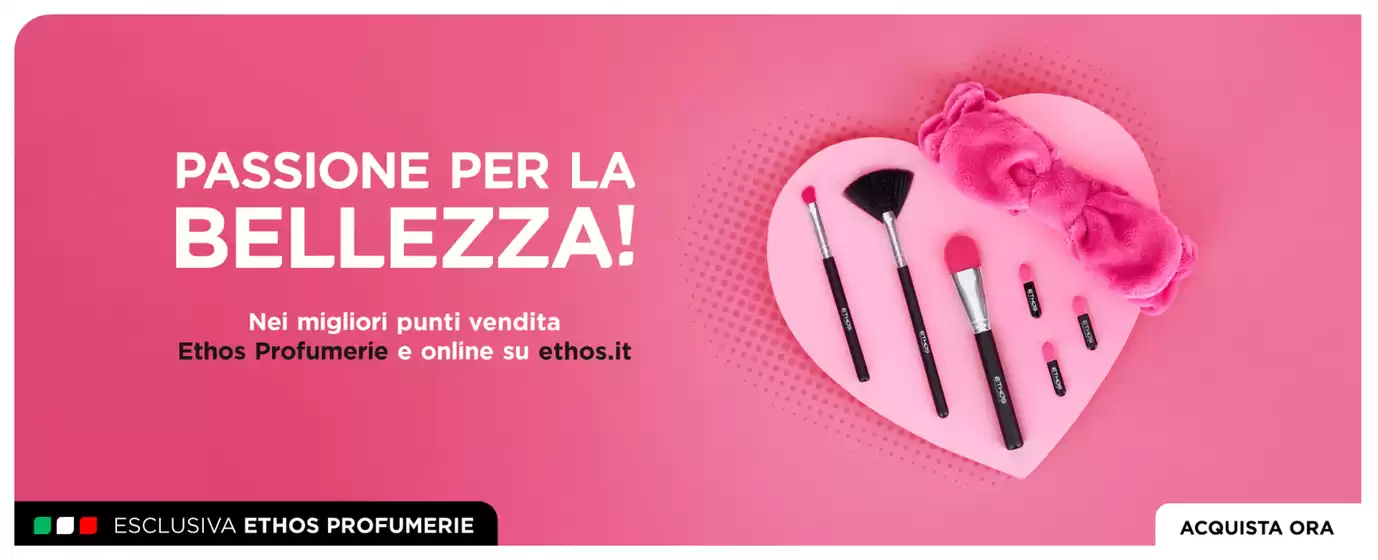 Ethos Profumerie è una catena di distribuzione di prodotti di bellezza. Ogni Profumeria Ethos propone ai suoi consumatori prodotti innovativi, offre un servizio di grande professionalità e cortesia Il catalogo Ethos Profumerie comprende prodotti e accessori per il make-up, cosmetici di bellezza, trattamenti d’avanguardia per viso e corpo, profumi, articoli per la cura dei capelli.