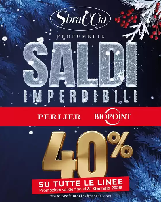 Benvenuto su Tiendeo, la tua migliore opzione per trovare le migliori offerte, cataloghi e promozioni di Salute e Benessere a Genova. Durante il mese di gennaio 2026, sulla nostra piattaforma potrai scoprire le ultime offerte di Profumerie Sbraccia, uno dei marchi più popolari nel settore Salute e Benessere a Genova.