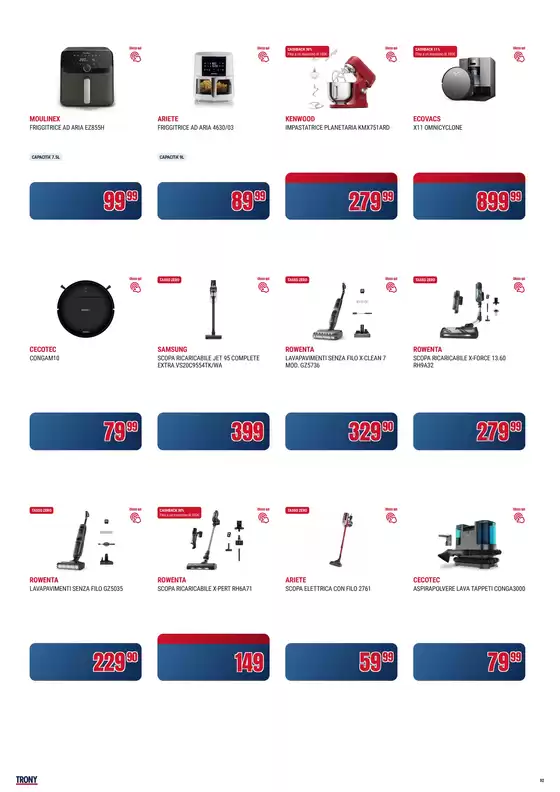 Trony è una catena italiana specializzata nella vendita di articoli di elettronica di consumo e hi-tech, con oltre 200 punti vendita distribuiti sul territorio. Il catalogo Trony conta migliaia di referenze e comprende le migliori marche nei settori dell’informatica, degli elettrodomestici, della telefonia, TV, audio e videogiochi. L’azienda offre anche la possibilità di acquistare online in modo facile e intuitivo.