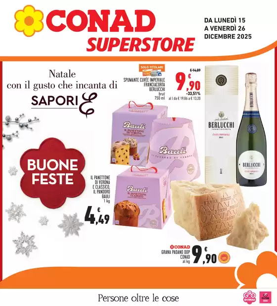 Conad è una catena italiana di supermercati e ipermercati che opera nel settore della Grande Distribuzione Organizzata, formata da 8 gruppi cooperativi. Il catalogo Conad Superstore coniuga la facilità della spesa vicino casa con la completezza dell’assortimento ed i maggiori servizi di aree commerciali ampie. Comprende prodotti alimentari, bevande, articoli per l’igiene e per la casa, hobby e giardinaggio. Le linee di articoli a marchio proprio spaziano dalle eccellenze di Sapori&Dintorni, ai prodotti Conad Kids per il bambino, Conad Verso Natura, Alimentum e Piacersi.