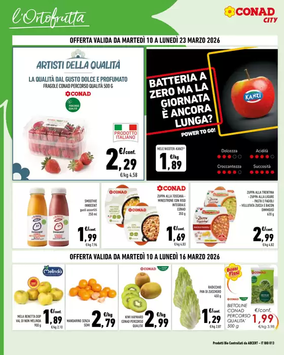 Conad è una catena italiana di supermercati e ipermercati che opera nel settore della Grande Distribuzione Organizzata, formata da 8 gruppi cooperativi. Il catalogo Conad City coniuga la facilità della spesa vicino casa con la completezza dell’assortimento e la qualità. Comprende prodotti alimentari, bevande, gastronomia, ortofrutta pronta alluso, panetteria e prodotti tipici regionali. Le linee di articoli a marchio proprio spaziano dalle eccellenze di Sapori&Dintorni, ai prodotti Conad Kids per il bambino, Conad Verso Natura, Alimentum e Piacersi.