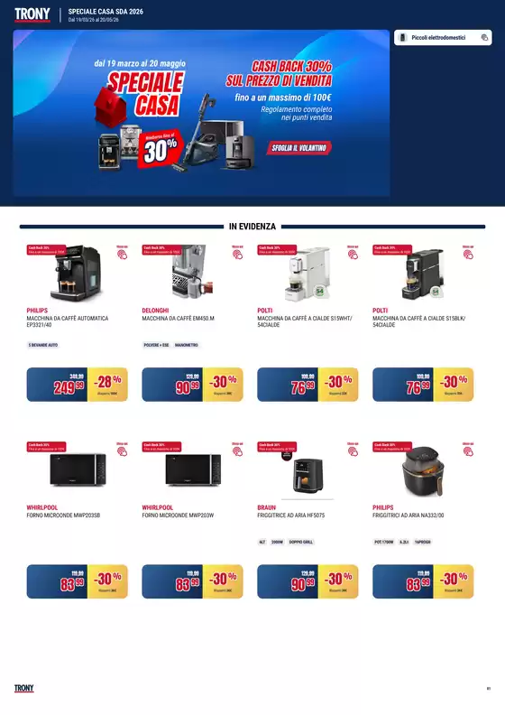 Trony è una catena italiana specializzata nella vendita di articoli di elettronica di consumo e hi-tech, con oltre 200 punti vendita distribuiti sul territorio. Il catalogo Trony conta migliaia di referenze e comprende le migliori marche nei settori dell’informatica, degli elettrodomestici, della telefonia, TV, audio e videogiochi. L’azienda offre anche la possibilità di acquistare online in modo facile e intuitivo.