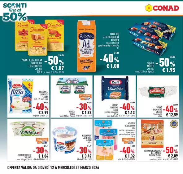 Conad, acronimo di Consorzio Nazionale Dettaglianti, è una società cooperativa fondata a Bologna e attiva dal 1962. Ad oggi Conad presenta oltre 3.000 punti vendita e 5.000 prodotti in assortimento, garantendo ogni giorno qualità e prezzi convenienti alla sua clientela. Conad offre format per ogni esigenza da iper e supermercati a punti vendita di minori dimensioni come Margherita Conad e Todis. Inoltre la clientela Conad può usufruire del servizio di spesa online HeyConad, che permette di ricevere l’ordine direttamente a casa tramite consegna a domicilio o ritirarlo presso uno dei punti vendita. Consulta l’anteprima del volantino Conad disponibile su Tiendeo e scopri maggiori informazioni su promozioni e servizi della catena.