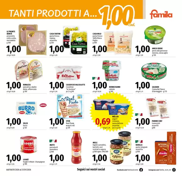 I supermercati Famila offrono qualità e convenienza sin dal 1964. Con oltre 3000 punti vendita in Italia, tra cui Famila Market, Famila Superstore e IperFamila, Famila soddisfa le esigenze di milioni di clienti. Oltre ai prodotti di alta qualità, Famila offre anche un servizio di spesa online con ritiro in negozio o consegna a domicilio. Scopri le incredibili promozioni e sconti consultando il prossimo volantino Famila su Tiendeo.
