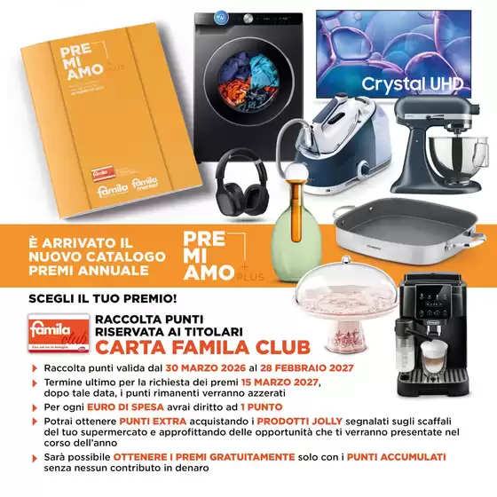 I supermercati Famila offrono qualità e convenienza sin dal 1964. Con oltre 3000 punti vendita in Italia, tra cui Famila Market, Famila Superstore e IperFamila, Famila soddisfa le esigenze di milioni di clienti. Oltre ai prodotti di alta qualità, Famila offre anche un servizio di spesa online con ritiro in negozio o consegna a domicilio. Scopri le incredibili promozioni e sconti consultando il prossimo volantino Famila su Tiendeo.