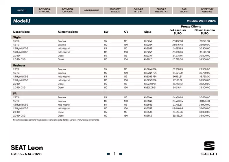 Benvenuto su Tiendeo, la tua migliore opzione per trovare le migliori offerte, cataloghi e promozioni di Motori a Mezzana Rabattone. Durante il mese di aprile 2026, sulla nostra piattaforma potrai scoprire le ultime offerte di SEAT, uno dei marchi più popolari nel settore Motori a Mezzana Rabattone.