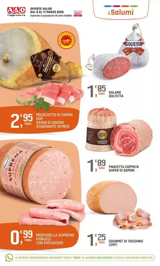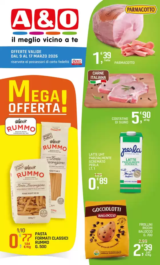 I Supermercati A&O sono un’insegna del Gruppo Selex, una delle più importanti realtà della distribuzione moderna italiana. Il catalogo A&O comprende un ampio assortimento di prodotti alimentari, con un’accurata selezione dei freschi e particolare attenzione ai prodotti tipici ed enogastronomici. Tutti gli assortimenti, dai salumi ai formaggi tipici, alla pasta, ai vini, alla frutta e verdura, rispecchiano in pieno le mille e golose sfaccettature delle tavole italiane.
