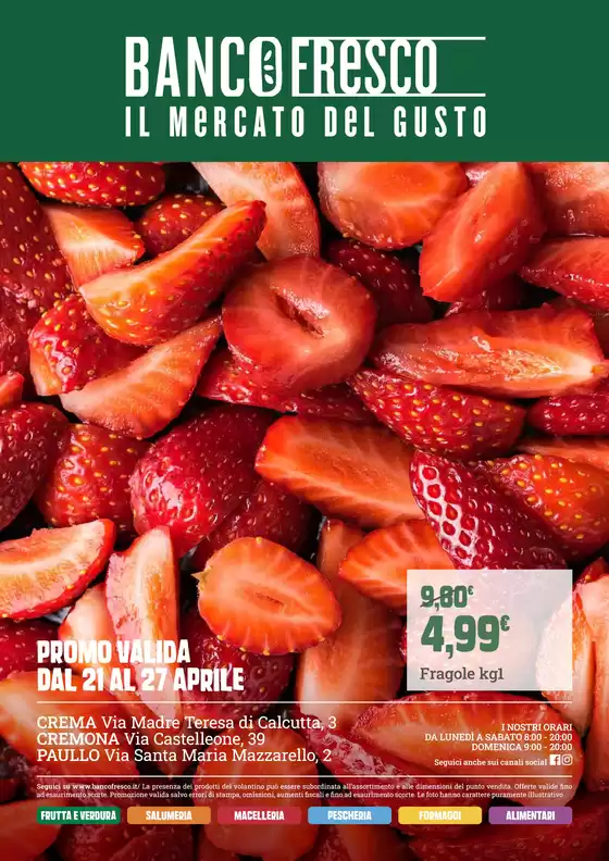 Benvenuto su Tiendeo, la tua migliore opzione per trovare le migliori offerte, cataloghi e promozioni di Iper e super a Offanengo. Durante il mese di aprile 2026, sulla nostra piattaforma potrai scoprire le ultime offerte di Banco Fresco, uno dei marchi più popolari nel settore Iper e super a Offanengo.