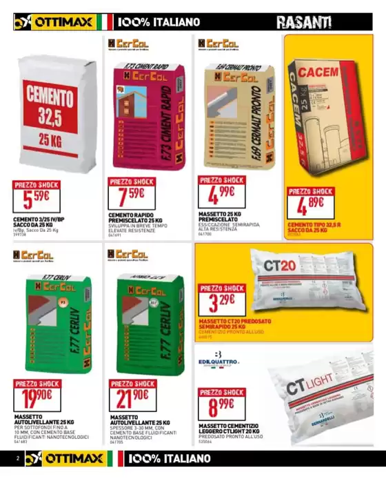 Ottimax è un’azienda italiana, specializzata nella vendita di articoli per l’edilizia e la manutenzione della casa. Il punto di forza dell’azienda sta nella capacità di saper parlare sia al professionista, sia all’artigiano, sia all’appassionato del fai da te, venendo incontro alle esigenze specifiche di tutti i clienti. Infatti la missione di Ottimax è offrire prodotti professionali di alta qualità a prezzi da ingrosso. Il catalogo Ottimax comprende marchi prestigiosi e prodotti professionali ai prezzi più convenienti con un assortimento che spazia in diversi settori merceologici: edilizia, elettricità, termoidraulica, piastrelle, vernici, ferramenta, falegnameria e giardino. L’azienda offre ai suoi clienti tutto il necessario per la costruzione, la ristrutturazione e la manutenzione, oltre a oltre 1000 varietà di piastrelle, 2000 porte e finestre in pronta consegna e più di 2000 colori di qualità professionale a prezzi da ingrosso. In più Ottimax vi offre la colazione fino alle 9.30 e il caffè tutto il giorno. Ottimax al momento è presente sul territorio italiano con 3 punti vendita ma visitando il sito web www.ottimax.it è possibile scoprire le promozioni Ottimax, sfogliare il volantino aggiornato e acquistare i prodotti online. Potrete consultare gli orari Ottimax e tutte le offerte Ottimax su Tiendeo!
