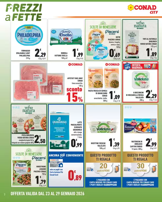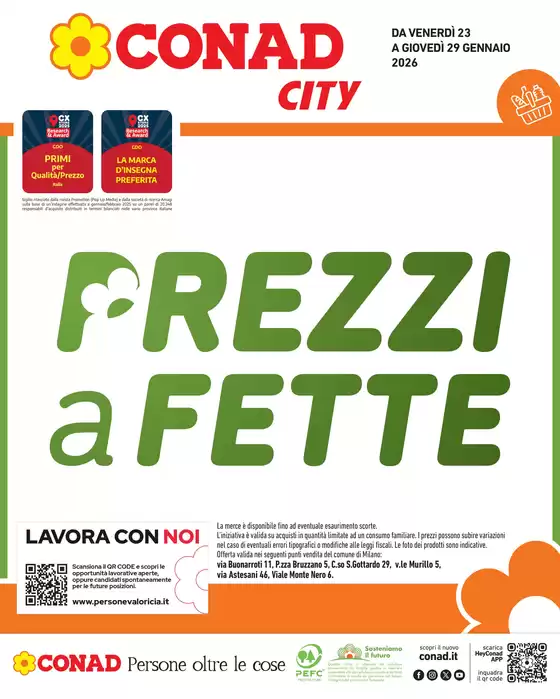 Conad è una catena italiana di supermercati e ipermercati che opera nel settore della Grande Distribuzione Organizzata, formata da 8 gruppi cooperativi. Il catalogo Conad City coniuga la facilità della spesa vicino casa con la completezza dell’assortimento e la qualità. Comprende prodotti alimentari, bevande, gastronomia, ortofrutta pronta alluso, panetteria e prodotti tipici regionali. Le linee di articoli a marchio proprio spaziano dalle eccellenze di Sapori&Dintorni, ai prodotti Conad Kids per il bambino, Conad Verso Natura, Alimentum e Piacersi.