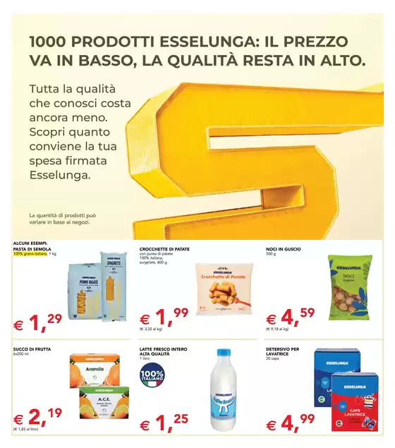 Esselunga è la prima catena italiana di supermercati e ipermercati. Il catalogo Esselunga comprende prodotti alimentari, bevande, articoli per l’igiene e per la casa. Le linee di articoli a marchio proprio spaziano dalle eccellenze della gamma Top ai prodotti Made in Parma, Equilibrio, Bio, Naturama, Pronti da Cuocere e Pronti in Tavola.