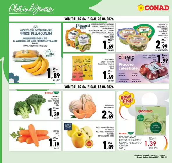 Conad, acronimo di Consorzio Nazionale Dettaglianti, è una società cooperativa fondata a Bologna e attiva dal 1962. Ad oggi Conad presenta oltre 3.000 punti vendita e 5.000 prodotti in assortimento, garantendo ogni giorno qualità e prezzi convenienti alla sua clientela. Conad offre format per ogni esigenza da iper e supermercati a punti vendita di minori dimensioni come Margherita Conad e Todis. Inoltre la clientela Conad può usufruire del servizio di spesa online HeyConad, che permette di ricevere l’ordine direttamente a casa tramite consegna a domicilio o ritirarlo presso uno dei punti vendita. Consulta l’anteprima del volantino Conad disponibile su Tiendeo e scopri maggiori informazioni su promozioni e servizi della catena.