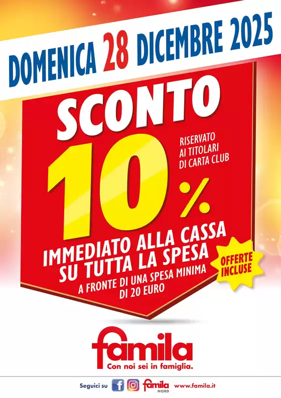 I supermercati Famila offrono qualità e convenienza sin dal 1964. Con oltre 3000 punti vendita in Italia, tra cui Famila Market, Famila Superstore e IperFamila, Famila soddisfa le esigenze di milioni di clienti. Oltre ai prodotti di alta qualità, Famila offre anche un servizio di spesa online con ritiro in negozio o consegna a domicilio. Scopri le incredibili promozioni e sconti consultando il prossimo volantino Famila su Tiendeo.